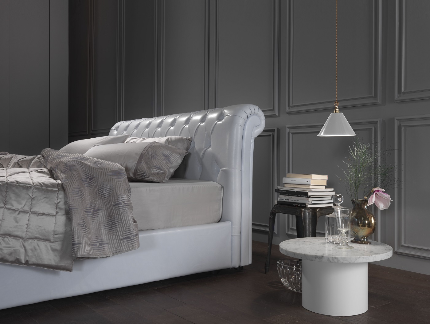 Кровать Lambert – компромисс между классикой и современностью. Эксклюзивная элегантность сочетается с роскошными и величественными линиями, придавая модели благородный облик. Величественное изголовье выполнено обивкой капитоне. Кровать Lambert способна гарантировать королевский отдых тем, кто знает себе цену.